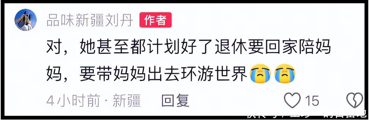 根据朋友刘丹透露的信息,贺娇龙曾计划退休后回家陪妈妈,要带妈妈出去环游世界。